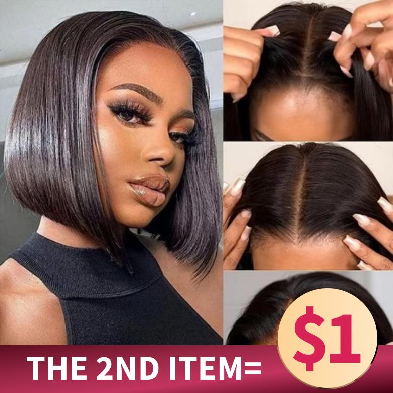 $1 For Another item| 10 inch 4X4 Closure 180% Density Natural Black Bob Wig+ Women's Day Surprise Pink Sleep Robe