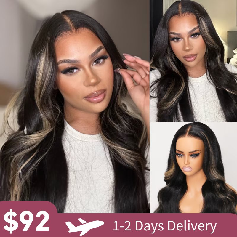 100 OFF Directly | 7x5 Byebye Knots Black with Blonde Highlight Body Wave And Jerry Curly Wigs Put on and Go Glueless Lace Human Hair Wig Member Exclusive