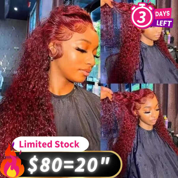 [$80=20"]13x4 Burgundy 99J Lace Frontal Jerry Curly Pre-plucked Wigs For Cyber Monday