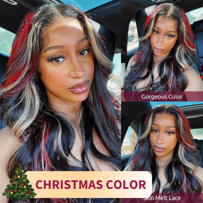 13x4 Lace Frontal loose wave black wigs with red and blonde highlights Body Wave For Clearance Sale