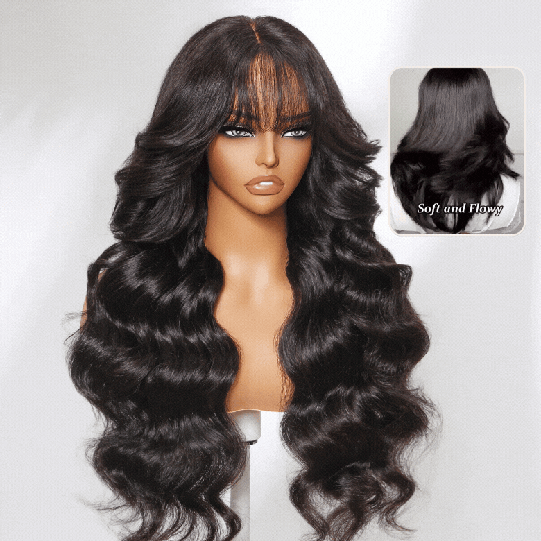 C. 20" 13x4 Pre Everything Fluffy Loose Wave Wig With Bangs