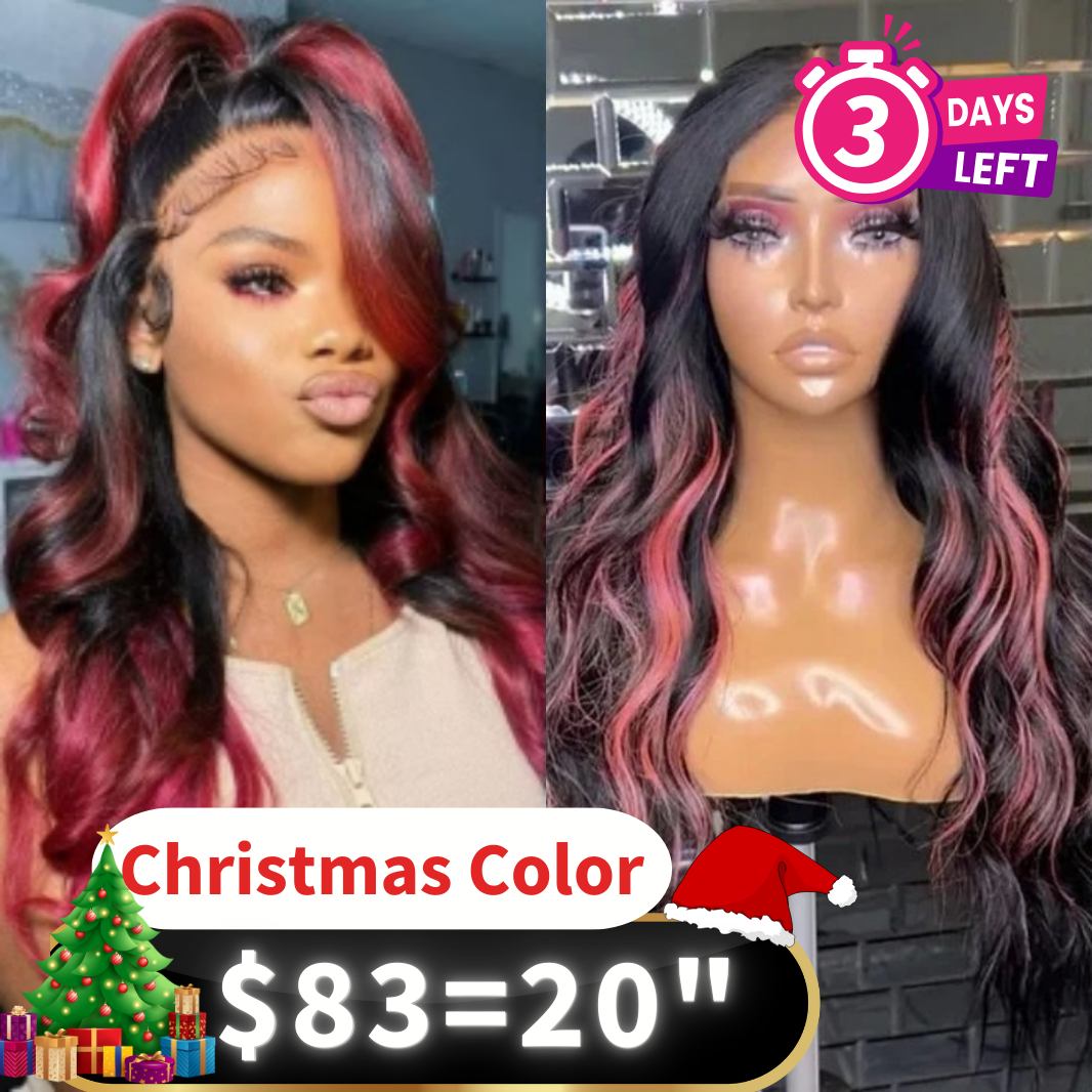 13X4 Transparent Lace Front Natural Black Body Wave With Pink Highlights And Ombre Highlight Dark Burgundy with Rose Red Wig For Black Friday