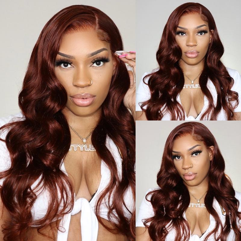 18 Inch 13X4 Dark Auburn Body Wave Lace Wigs Merry Christmas BOGO FREE
