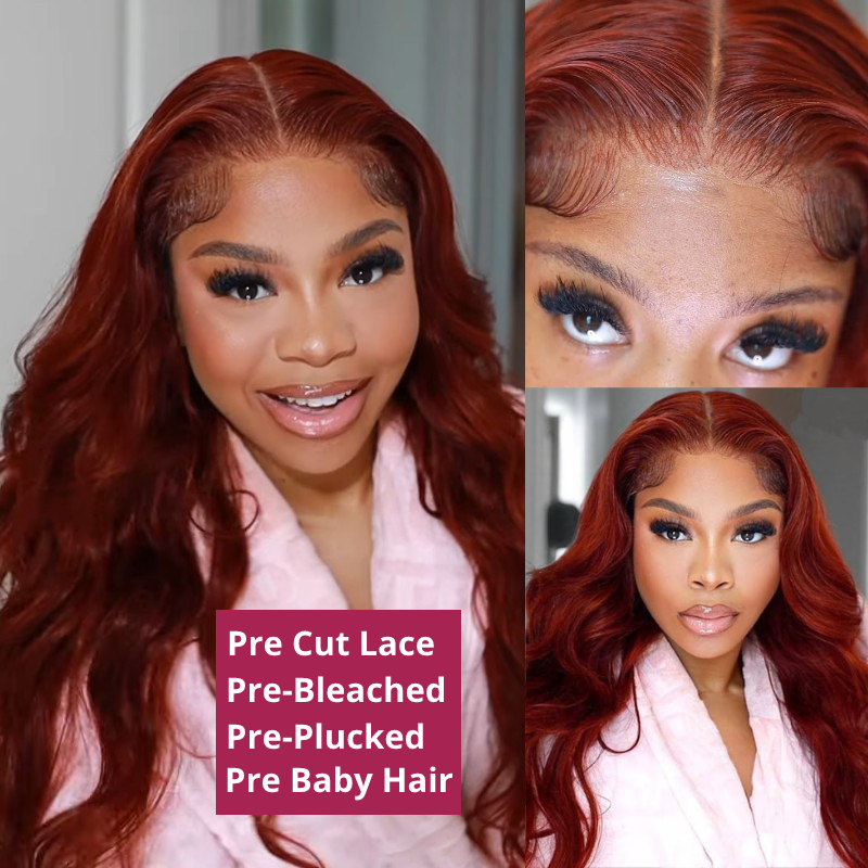 18 Inch=$61|Best Red Brown V Part Wig And Reddish Brown Body Wave Put on and Go Glueless Wigs with Pre-Bleached Knots Clearance Sale