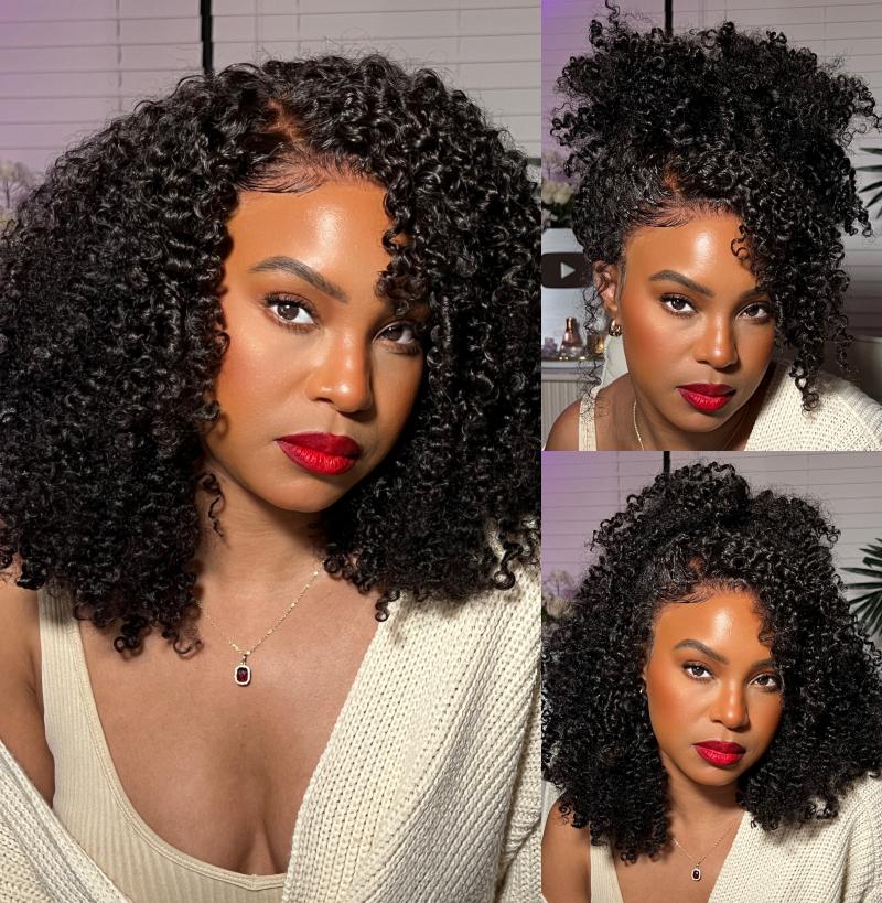 180% Density 13X4 Balayage Brown And 7X5 Natural Black Pre Bleached Kinky Curly Lace Wig Member Exclusive