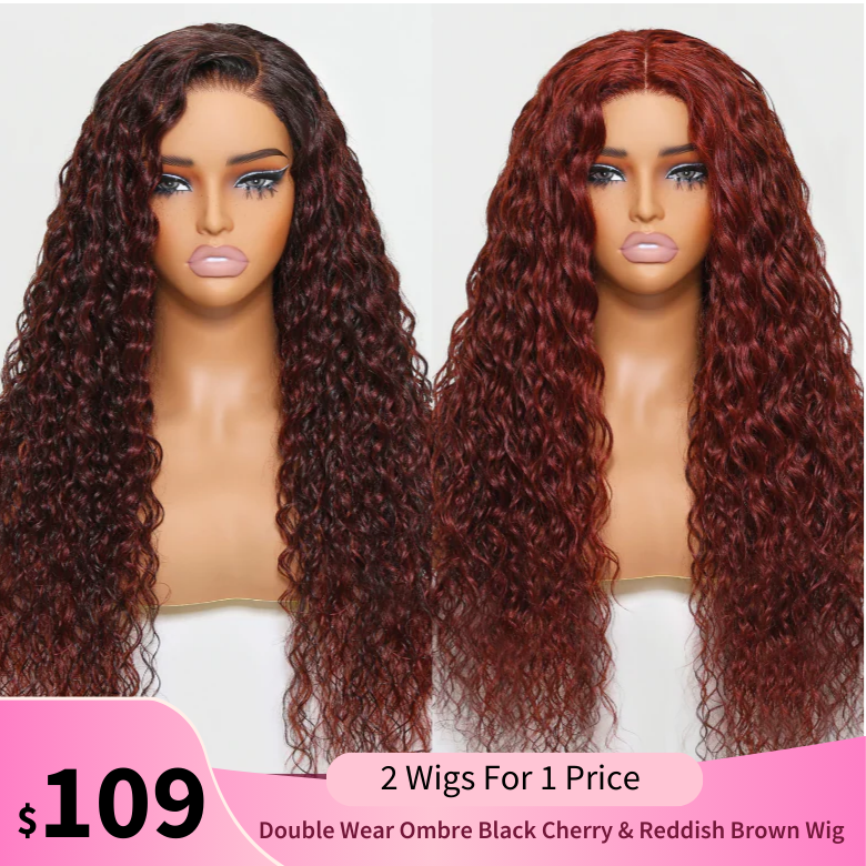 2 Wigs For 1 Price | Double WearOmbre Black Cherry & Reddish Brown Wig Water Wave Flip & Go Fast Transformation 100% Human Hair Wg Member Exclusive
