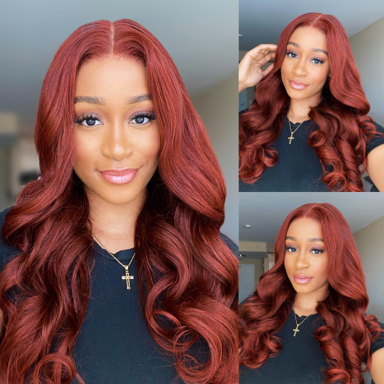 33B Auburn Body Wave 6x4.75 Glueless Pre-Cut Lace With Baby Hair Put On And Go Wigs