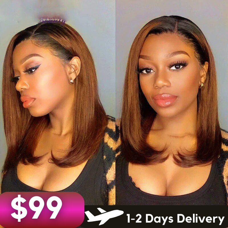 50% OFF Half Price| 14inch Natural Black with Light Auburn Bob Wigs 13x5 T-part Pre-plucked Human Hair Wig Member Exclusive