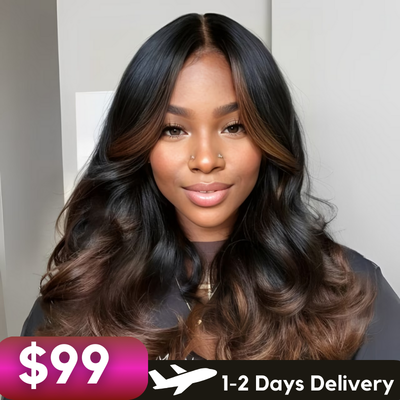 50% OFF Half Price| Bye Bye Knots Wig 7x5 Pre Cut Glueless Lace Black to Chestnut Brown Ombre Loose Wave Wigs Member Exclusive