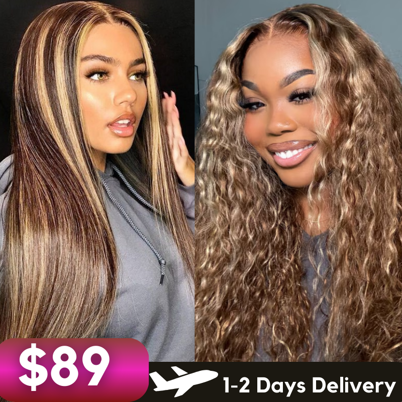 50% OFF Half Price| Honey Blonde Highlight 13x4 Pre-Everything Water Wave And 180% Density 13x5 Lace T part Straight Wig Member Exclusive