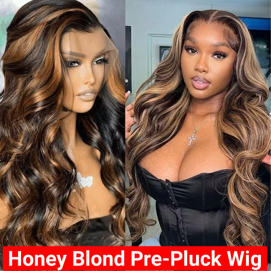 80% OFF | 13X4 Lace front Pre-pluck Honey Blond Highlights Lace Body Wave Wigs Whatsapp Sale