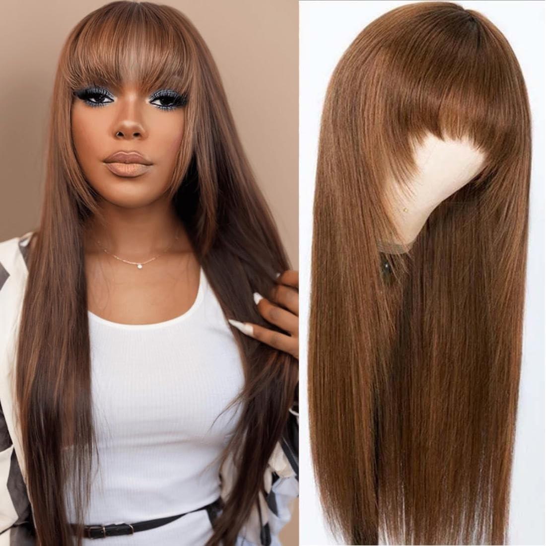$85=20 inch|Dark Brown Silky Straight Wig With Bangs