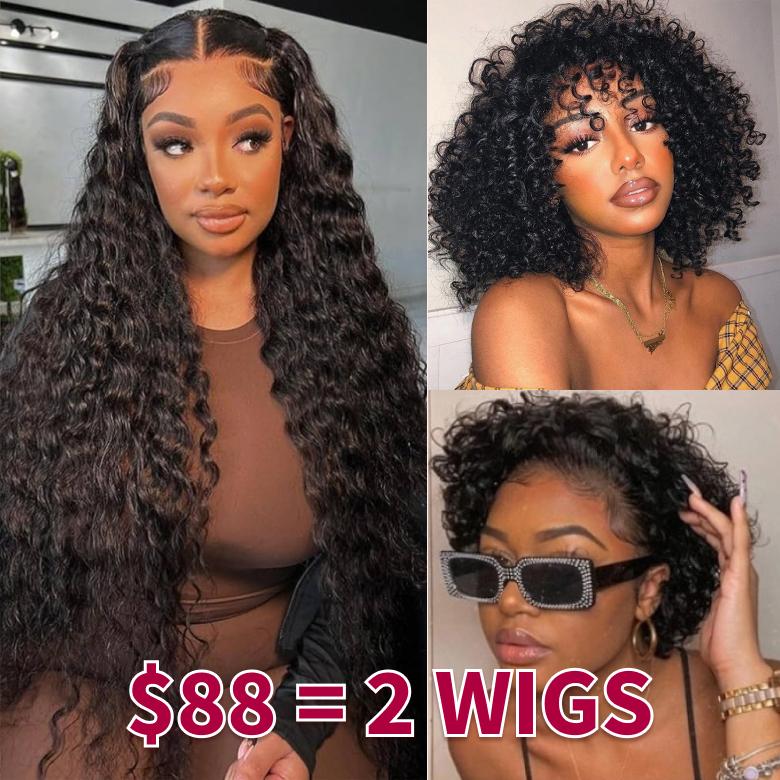 [$88 get 2 Wigs]16 Inch Jerry Curly Wig And 12 Inch Bouncy Curls Glueless Bob Wig Member Exclusive