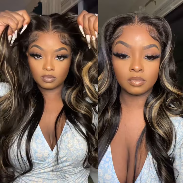[$89 Deal]7x5 Bye Bye Knots 2.0 Blonde Highlight Balayage Black Kinky Curly And Body Wave Wig