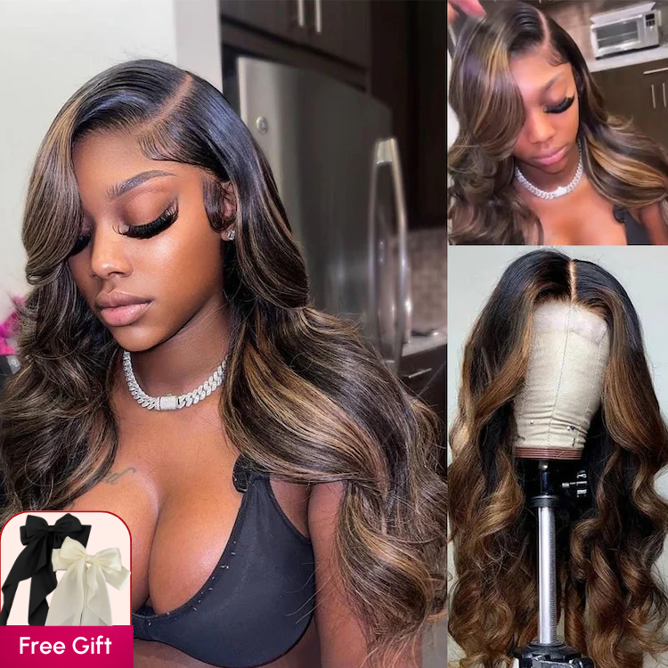 $90=20 inch|Put On And Go 3D Body Wave Balayage Brown Highlight Wig Member Exclusive