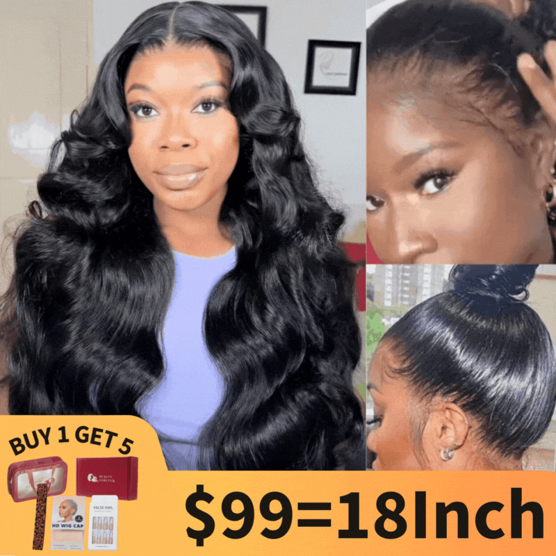 $99=18inch| Magic Lace Wig 7x5 Bye Bye Knots Body Wave Natural Black Color Put on and Go 180% Density Wig Member Exclusive