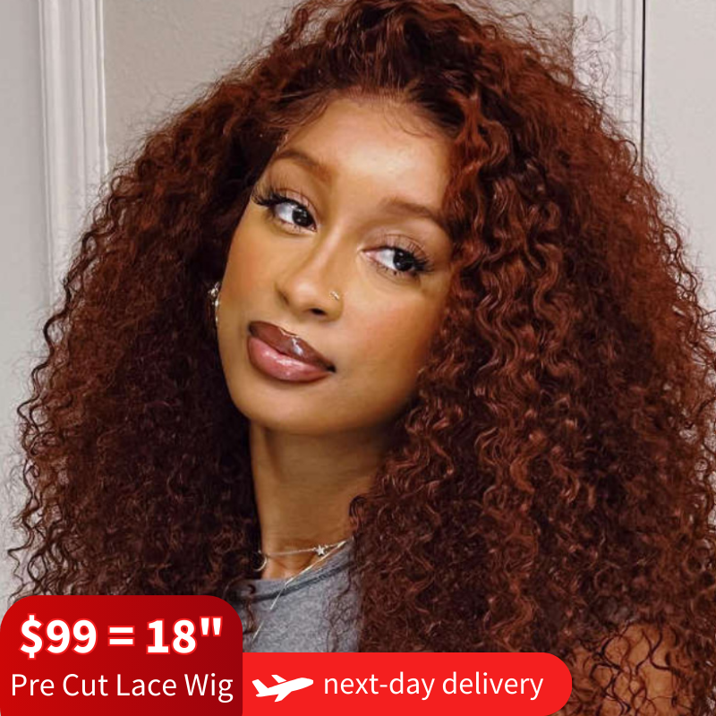 $99=18 inch|Reddish Brown Bouncy Jerry Curly 6X4.75 Pre Cut Lace Glueless Wig Member Exclusive