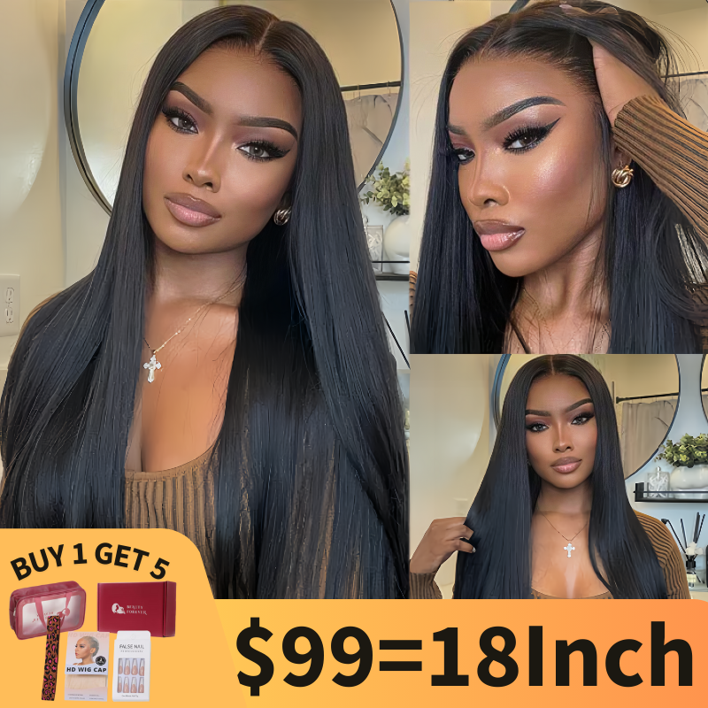 $99=18inch| Silky Straight 6x4.75 Pre Cut Lace Put On And Go Natural Color Wig Member Exclusive