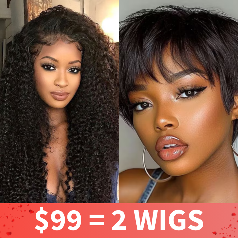 18" 4x0.75 Lace Part Kinky Curly Wig + 6" Short Bob Wig With Bangs