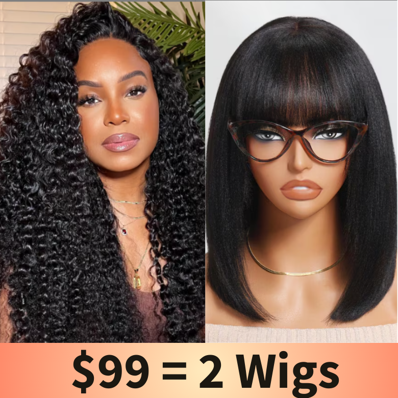 B. 10" 180% Glueless Bob Wig With Bangs And 6" Glueless Pixie Curl Wig
