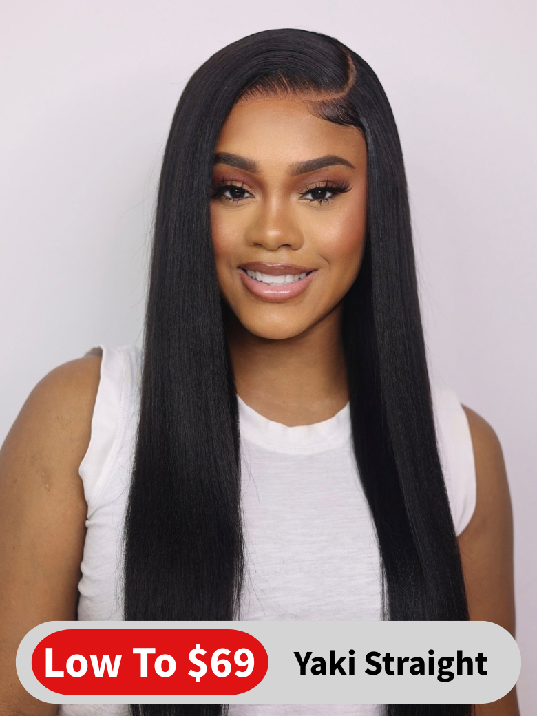 Down to $69 | Yaki Straight 7x5 Bye-bye Knots Glueless Lace Wig Pull & Go Human Hair Wigs with Invisible Knots