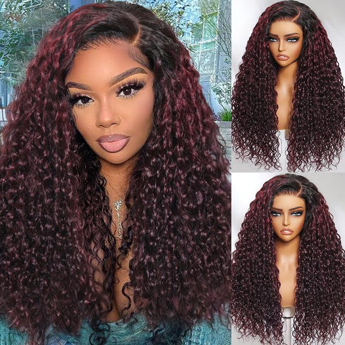 Beautyforever 13x4 Lace Frontal Burgundy Plum With Dark Roots Water Wave Pre-Everything Lace Wig
