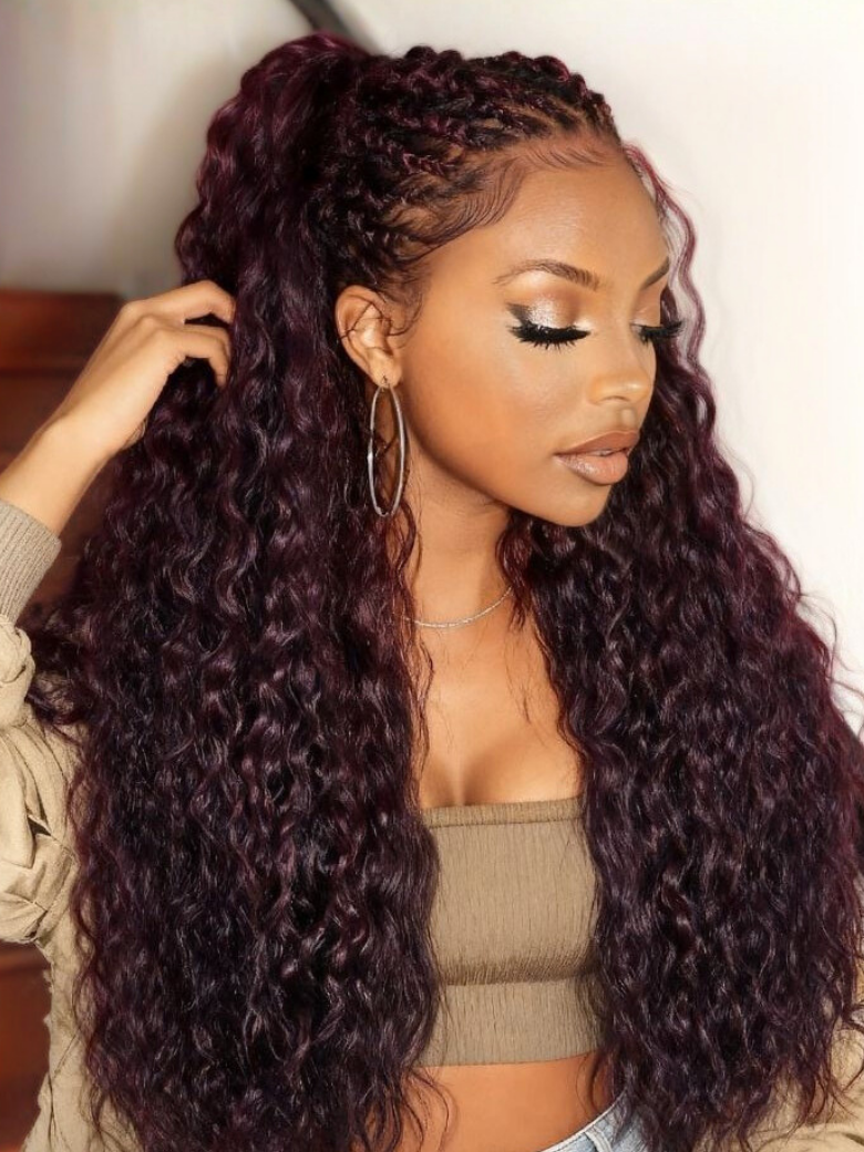 Beautyforever 13x4 Pre-Everything Lace Frontal Purple Black Cherry Water Wave Wig Effortlessly Glueless Human Hair Wig