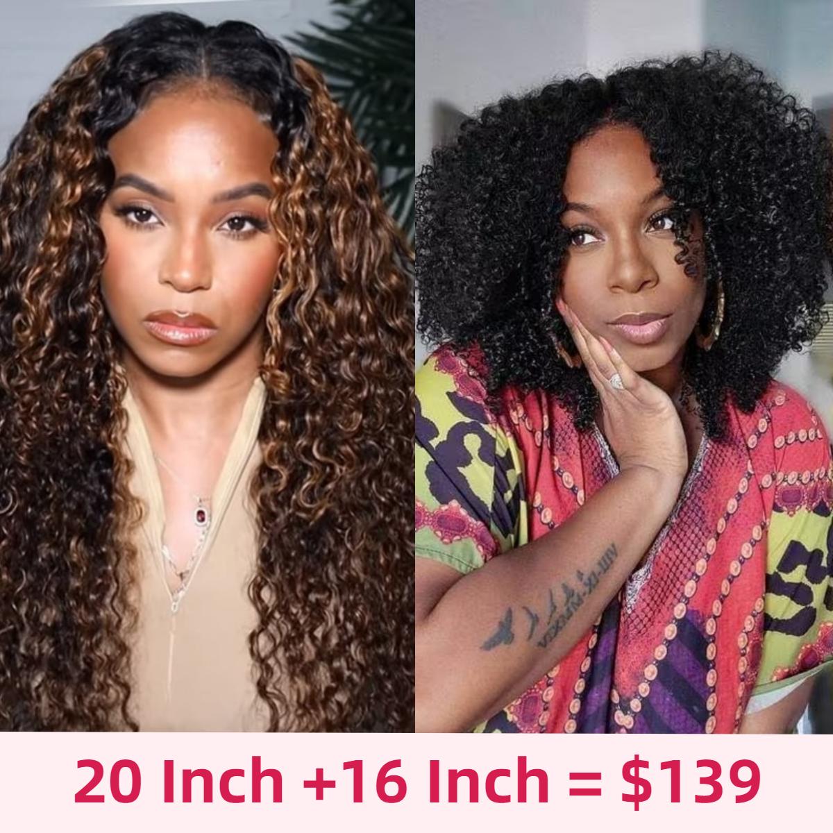 [2 Wigs=$139]Beautyforever 20'' Wear Go Glueless Jerry Curly Highlight U Part Wig And 16'' Jerry Curly U Part Wig Natural Color Glueless Human Hair Wigs