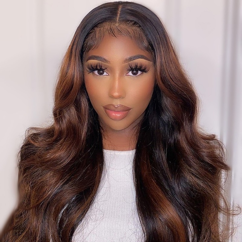 V-Part Chestnut Brown Ombre Body Wave Wig Real Scalp Put on and Go Glueless Human Hair Wig