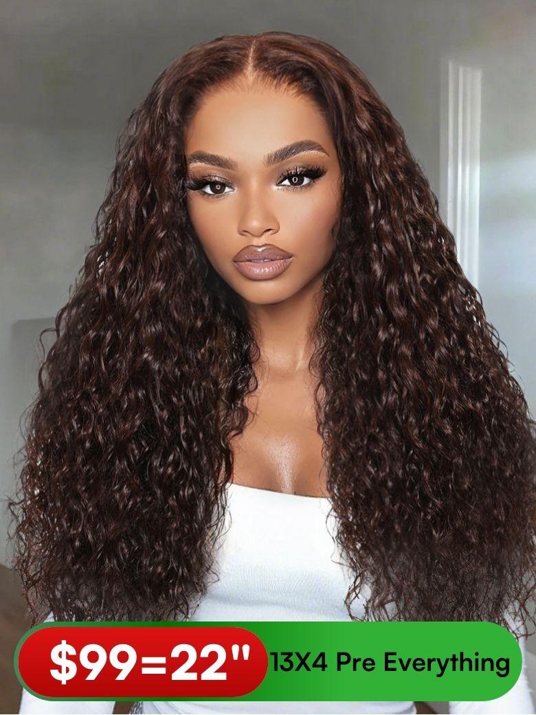 $99=22 inch| Smoky Auburn Brown Water Wave Wig 13x4 Pre-Everything Lace Frontal Human Hair Wig