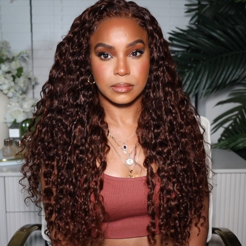 Beautyforever Smoky Auburn Brown Water Wave Wig 13x4 Pre-Everything Lace Frontal Human Hair Wig