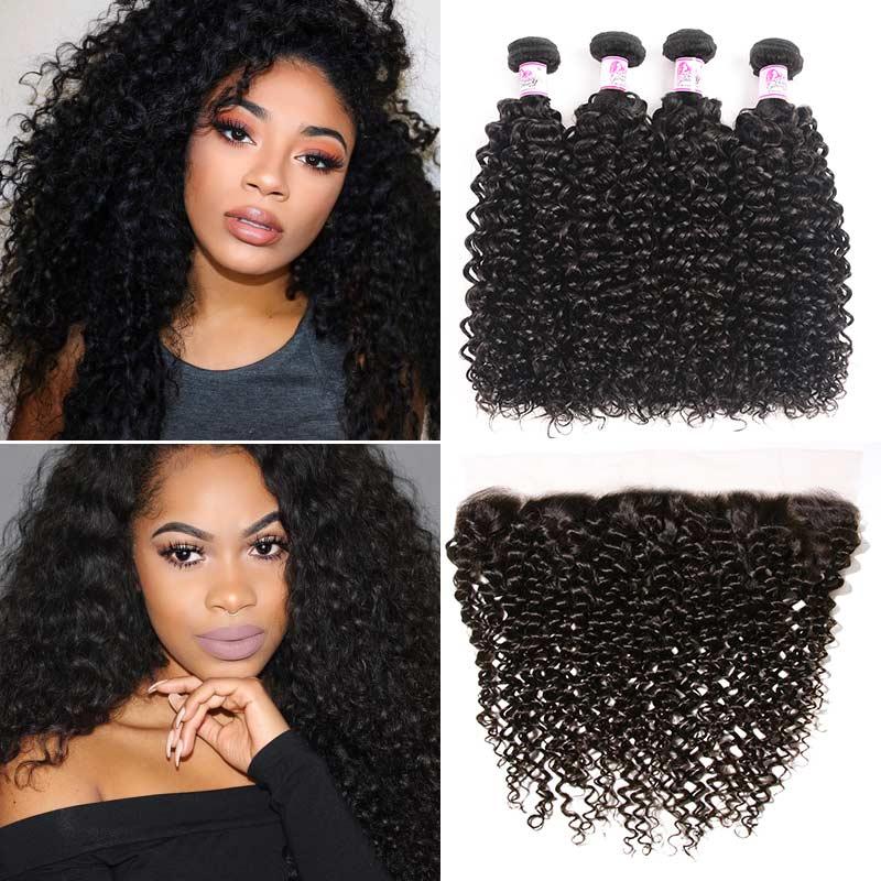 Beautyforever 4Bundles Peruvian Jerry Curly Hair With 13*4 Lace Frontal Closure