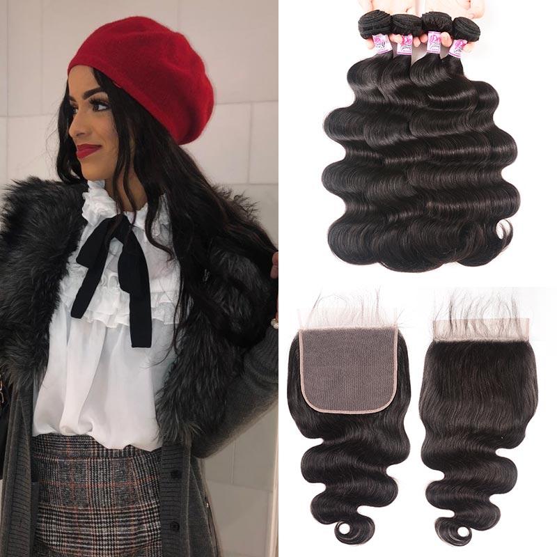 Beautyforever 4Bundles With 7*7 Free Part Lace Closure Indian Body Wave