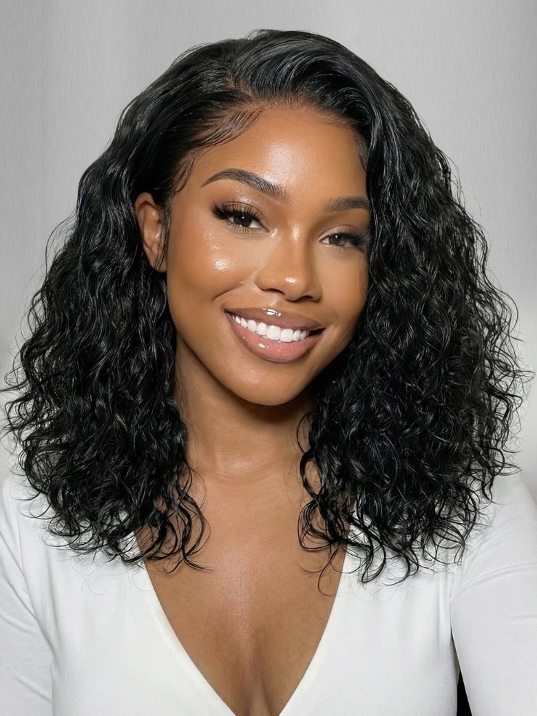 Beautyforever 6x4 Gluless Lace Wig Natural Side Part Short Bob Water Wave Human Hair Wig with Invisi-Drawstring 250% Density