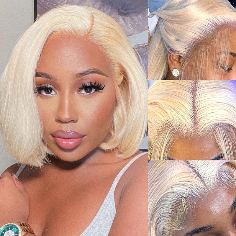 Beautyforever 613 Bob Wig Short Blonde Hair 4x4 Lace Closure Wigs Straight Virgin Human Hair 150% Density