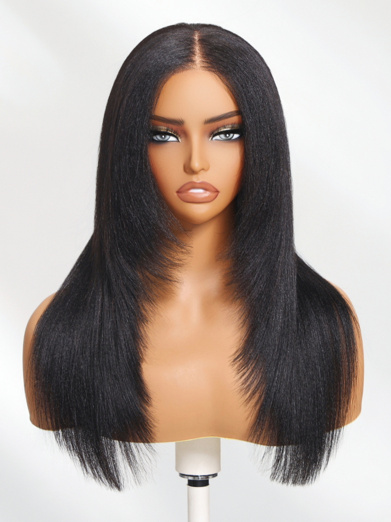 Beautyforever 13x4 Pre-Everything Lace Frontal Wig Sleek Yaki Straight Face-Framing Layers Glueless Human Hair Wigs