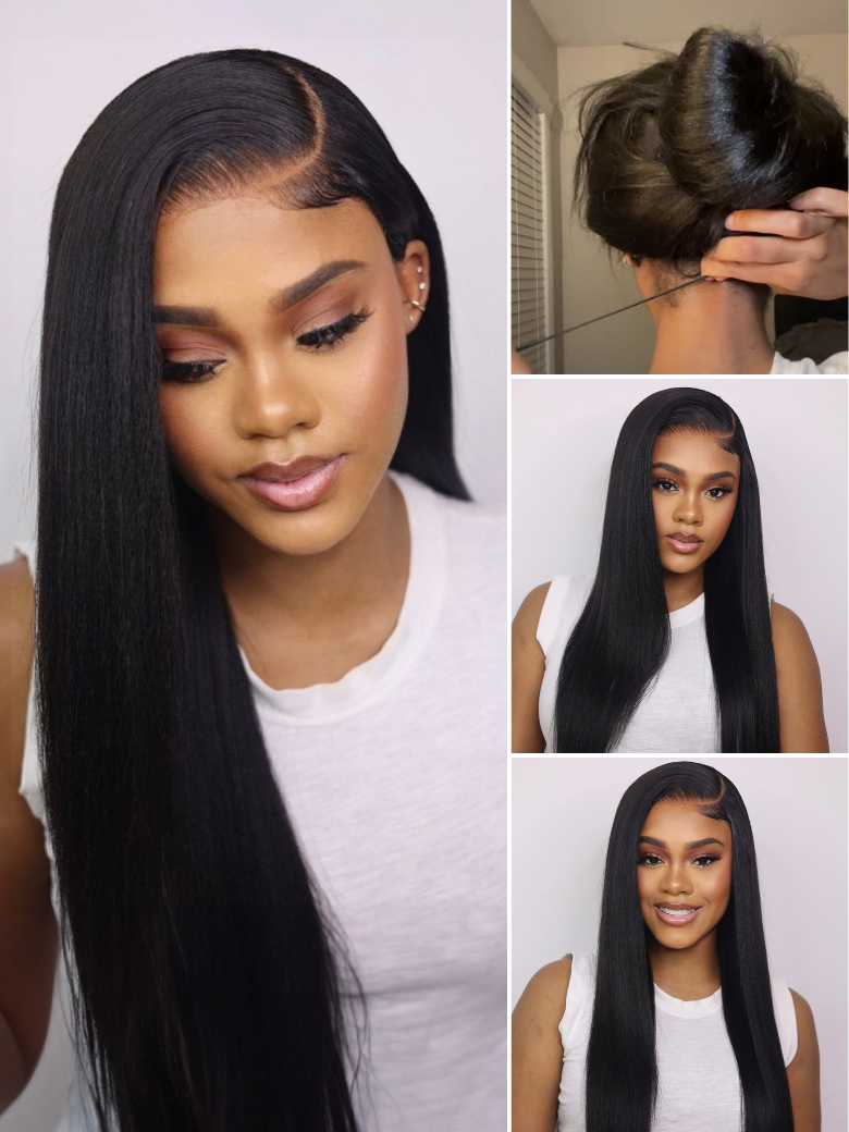 Beautyforever 7x5 Glueless Lace Black Yaki Straight Human Hair Wig With Elastic Drawstring 360 Cozy Hug