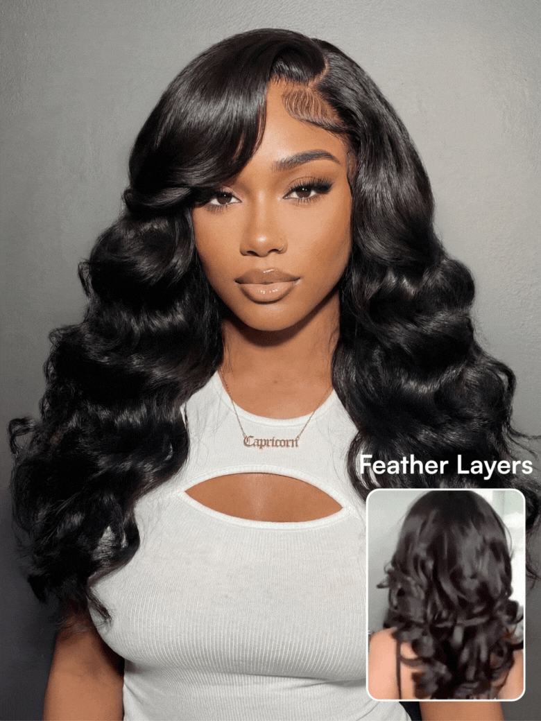 Beautyforever 7x5 Glueless Lace No Slip™ Wig Retro Glam Curls Feathered Layers Salon-finished Look Human Hair with Face-framing Side-swept Bang