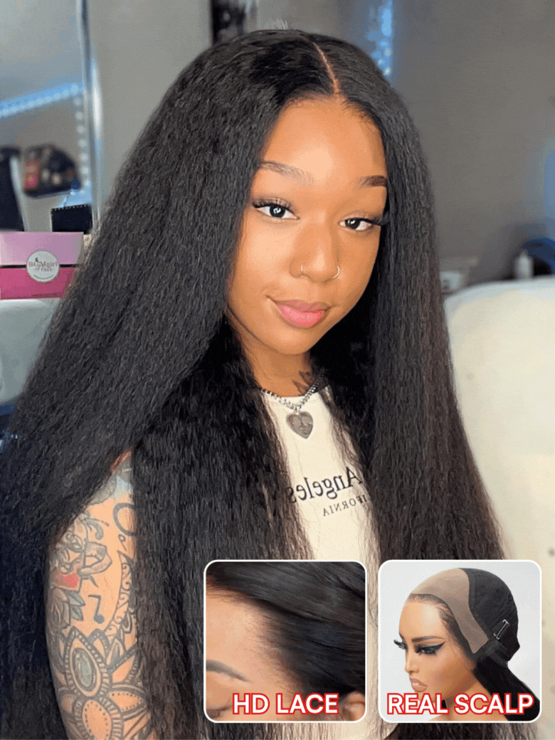 Beautyforever HD Real Scalp™ Wig 13x4 HD Lace Frontal Kinky Straight Human Hair Wig with Invisi-Drawstring