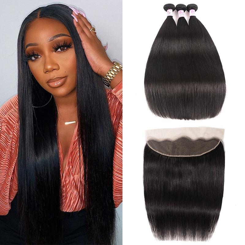 Beautyforever Peruvian Pre-plucked Straight Hair Lace Frontal Closure 13*4 With 3Bundles