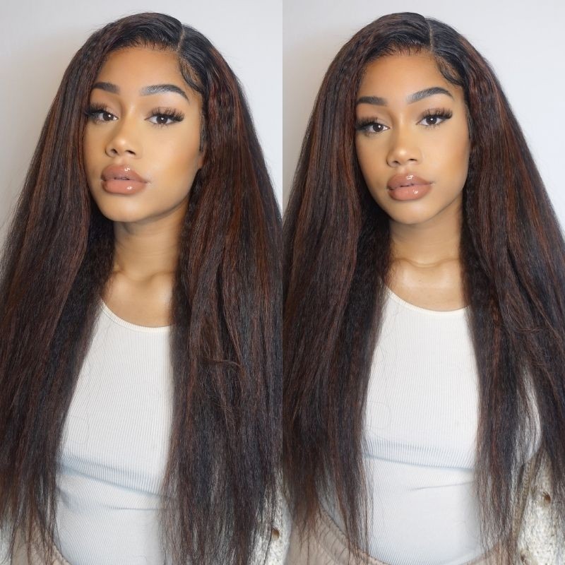 Beautyforever Auburn Highlight 13x4Transparent Lace Front Wigs Kinky Straight Huamn Hair Wig For Women