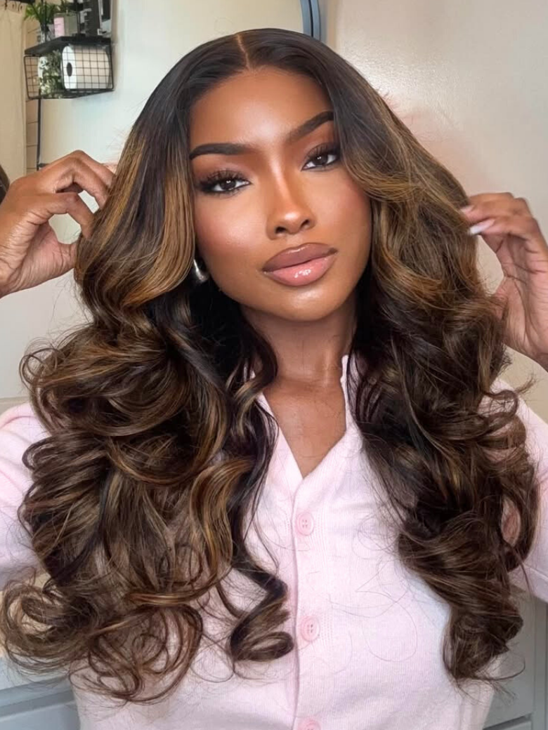 Beautyforever Balayage Brown Highlight Face Framing Layers Loose Wave Wig 7x5 Bye Bye Knots Glueless Lace Human Hair Wigs