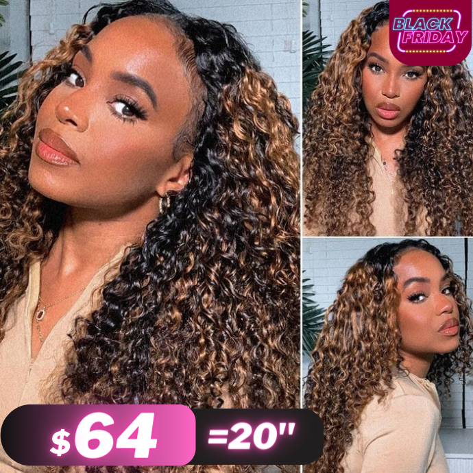 Upgraded U Shape Balayage Highlight Color Curly Wig Beginner Friendly No Leave Out Glueless Human Hair Wig