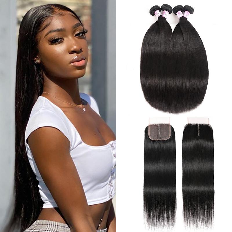 Beautyforever Best 4Bundles With T Part Lace Closure Straight Human Hair For Sale