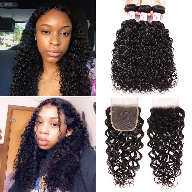 Beautyforever Best Indian Loose Water Wave 3 Bundles With 4x4 Lace Closure