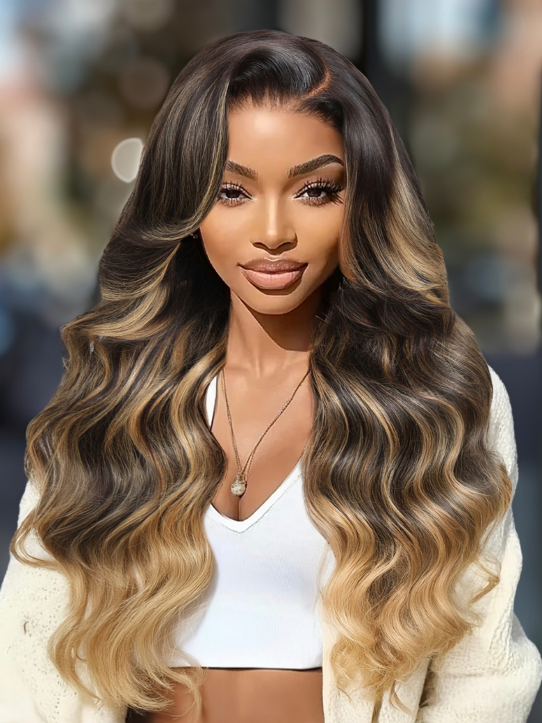 Beautyforever 7x5 Bye Bye Knots Glueless Lace Wigs Natural Black with Blonde Highlight Loose Wave Human Hair Wig with Face Framing Layers