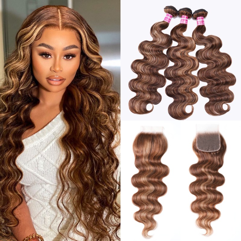 Beautyforever Body Wave 3 Bundles With Undetectable Light Honey Blonde Color 4x4 Lace Closure