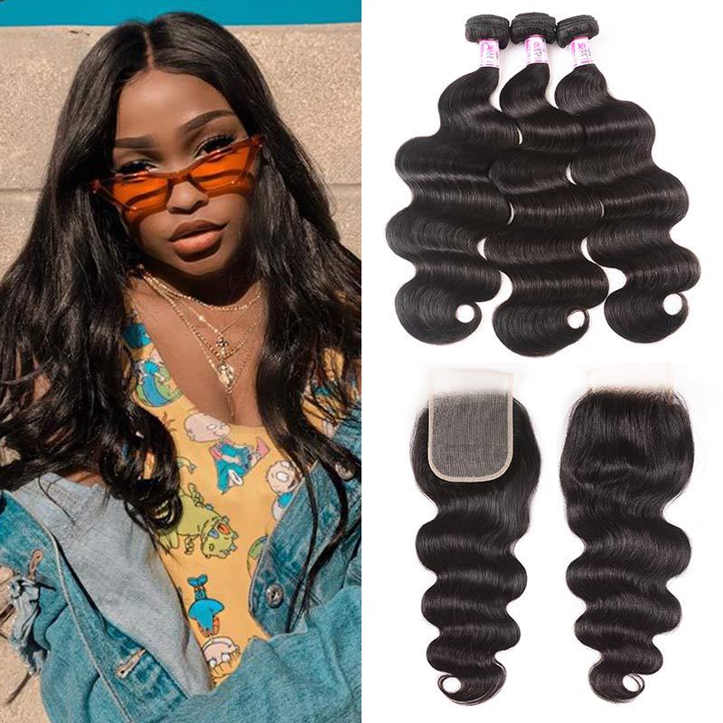 Beautyforever Body Wave Pre-plucked 4x4 Transparent Lace Closure With 3 Bundles Remy Hair