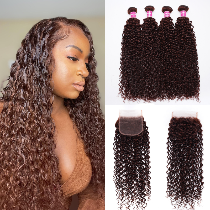Beautyforever Brazilian Jerry Curly 33B Color 4x4 Lace Closure With 4 Bundles Human Hair Weave