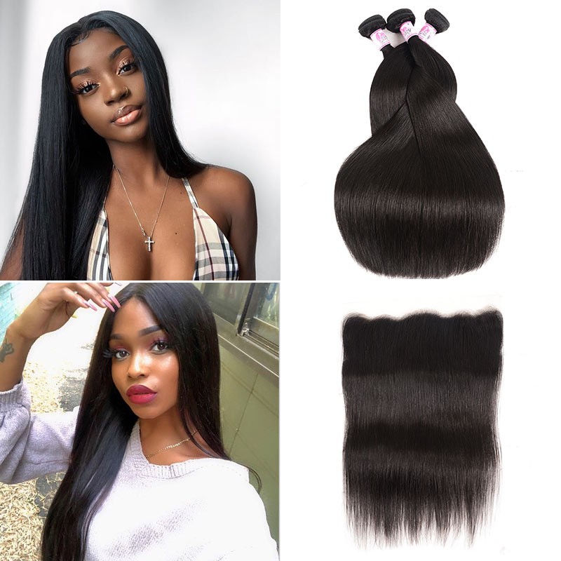 Beautyforever Brazilian Straight 13x4 Transparent Lace Frontal With Human Hair 3Bundles
